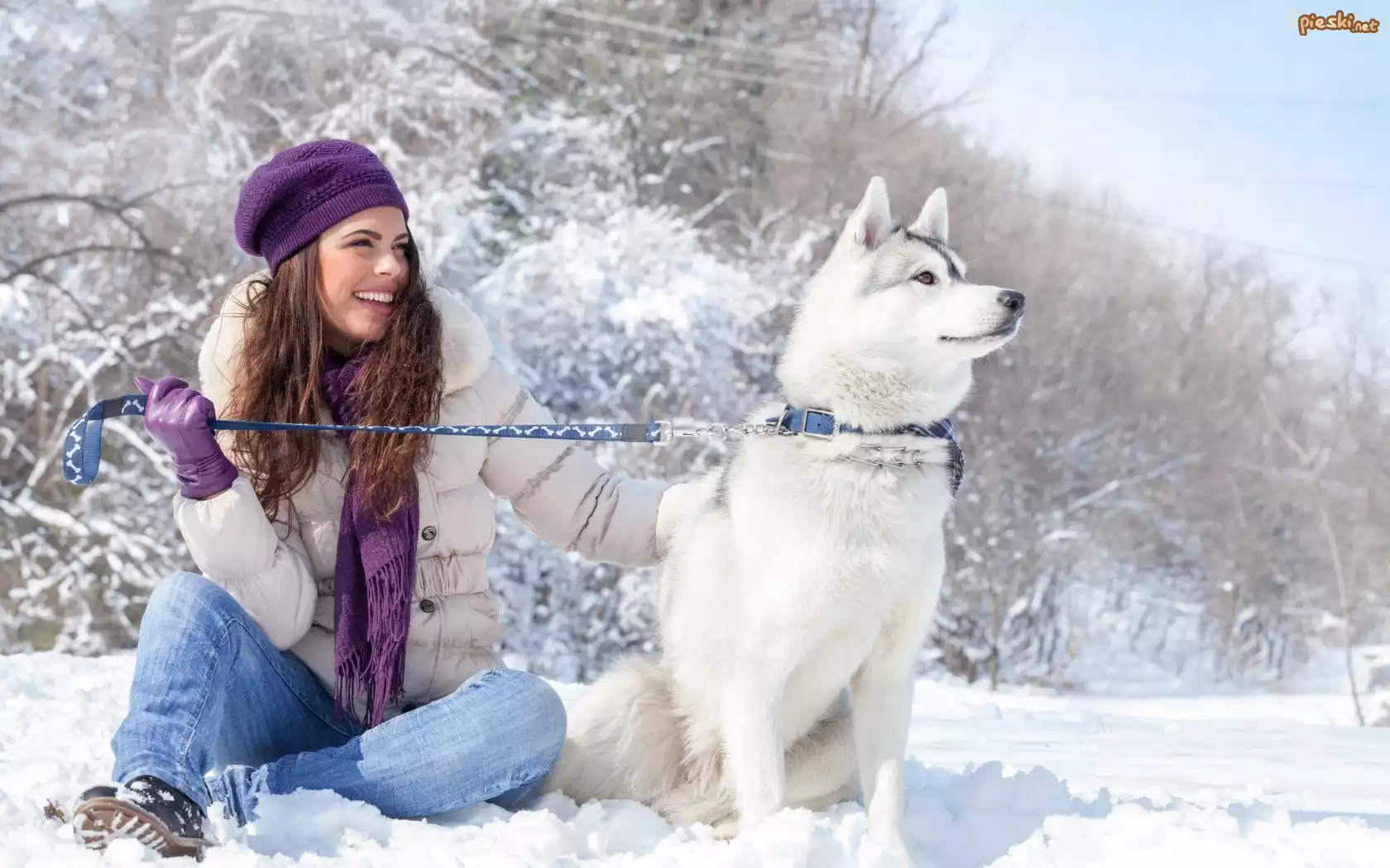 Pies Siberian Husky, Brunetka, Zima, Śnieg