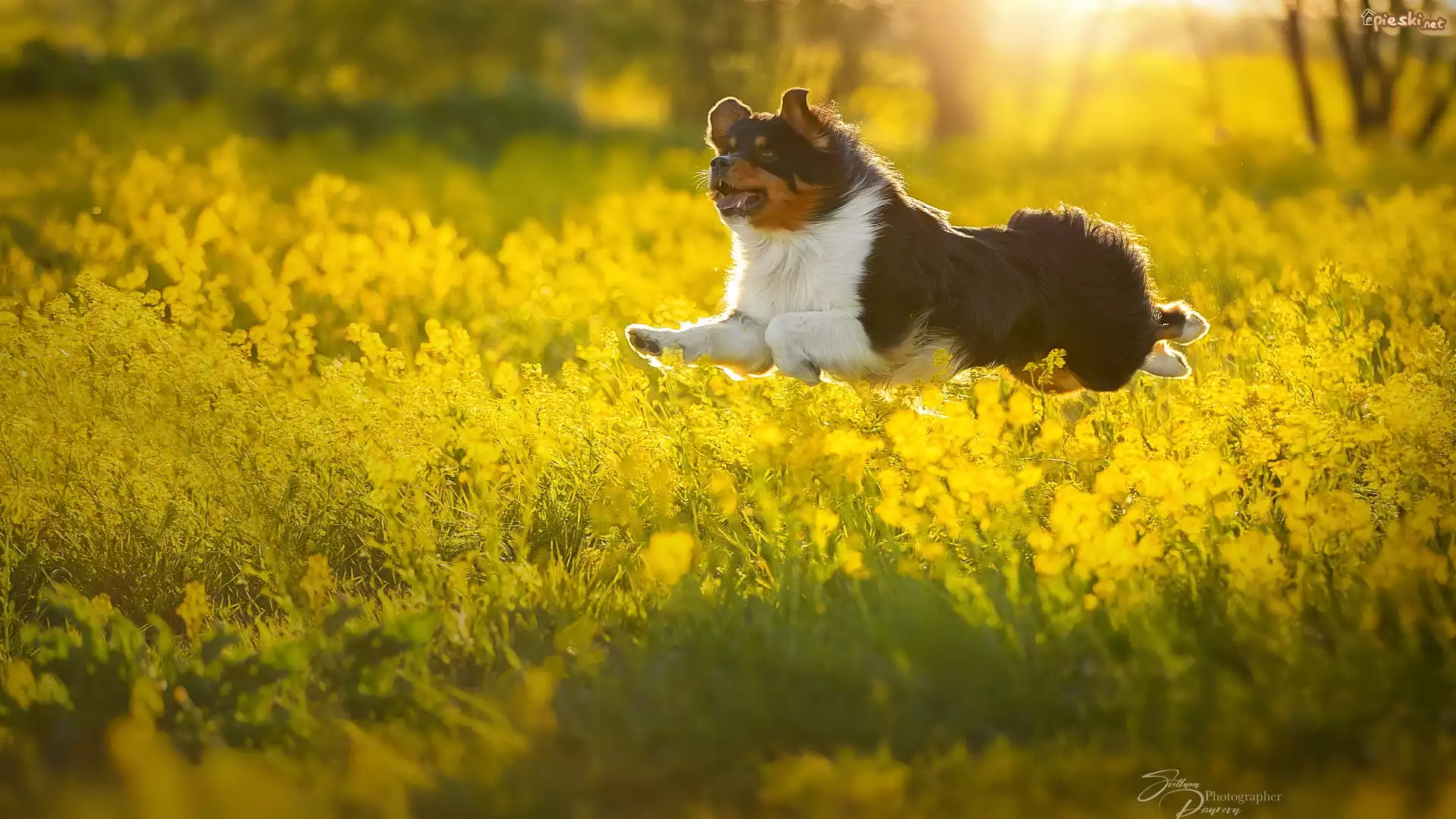 Pies Skaczący, Pies, Żółte, Kwiaty