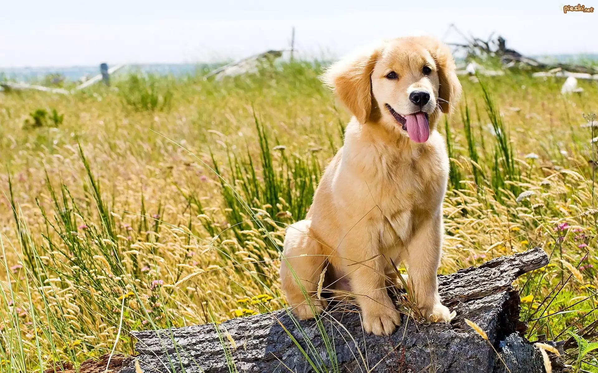 Pies Słodki, Szczeniak, Łąka, Trawa