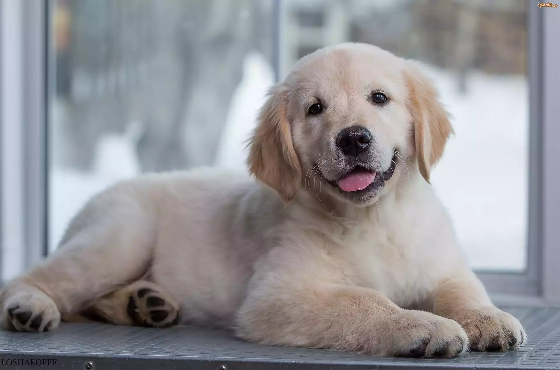 Pies Słodki, Szczeniak, Golden retriever, Okno