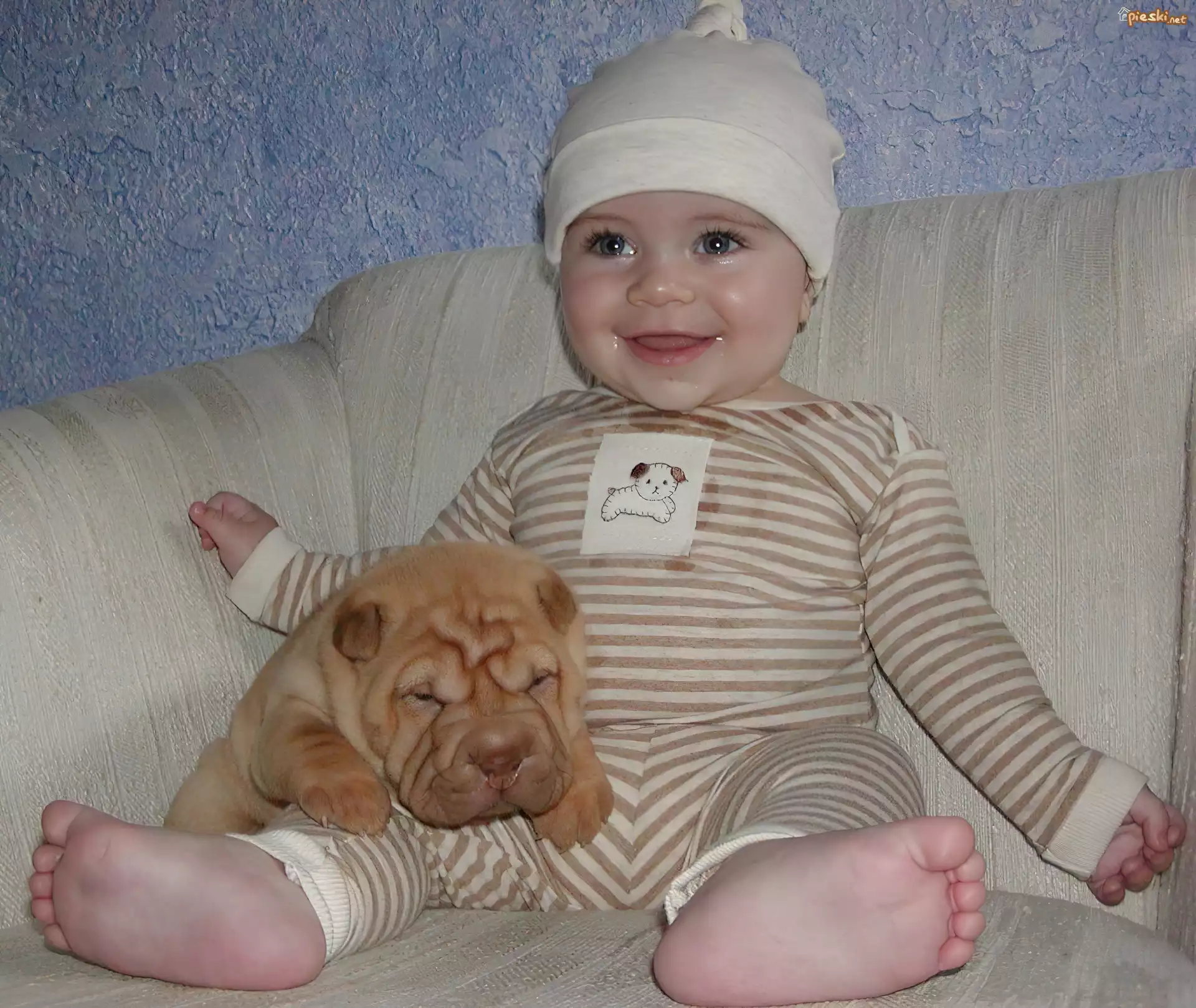 Pies słodki, szczeniak, Shar Pei, zadowolone, dziecko