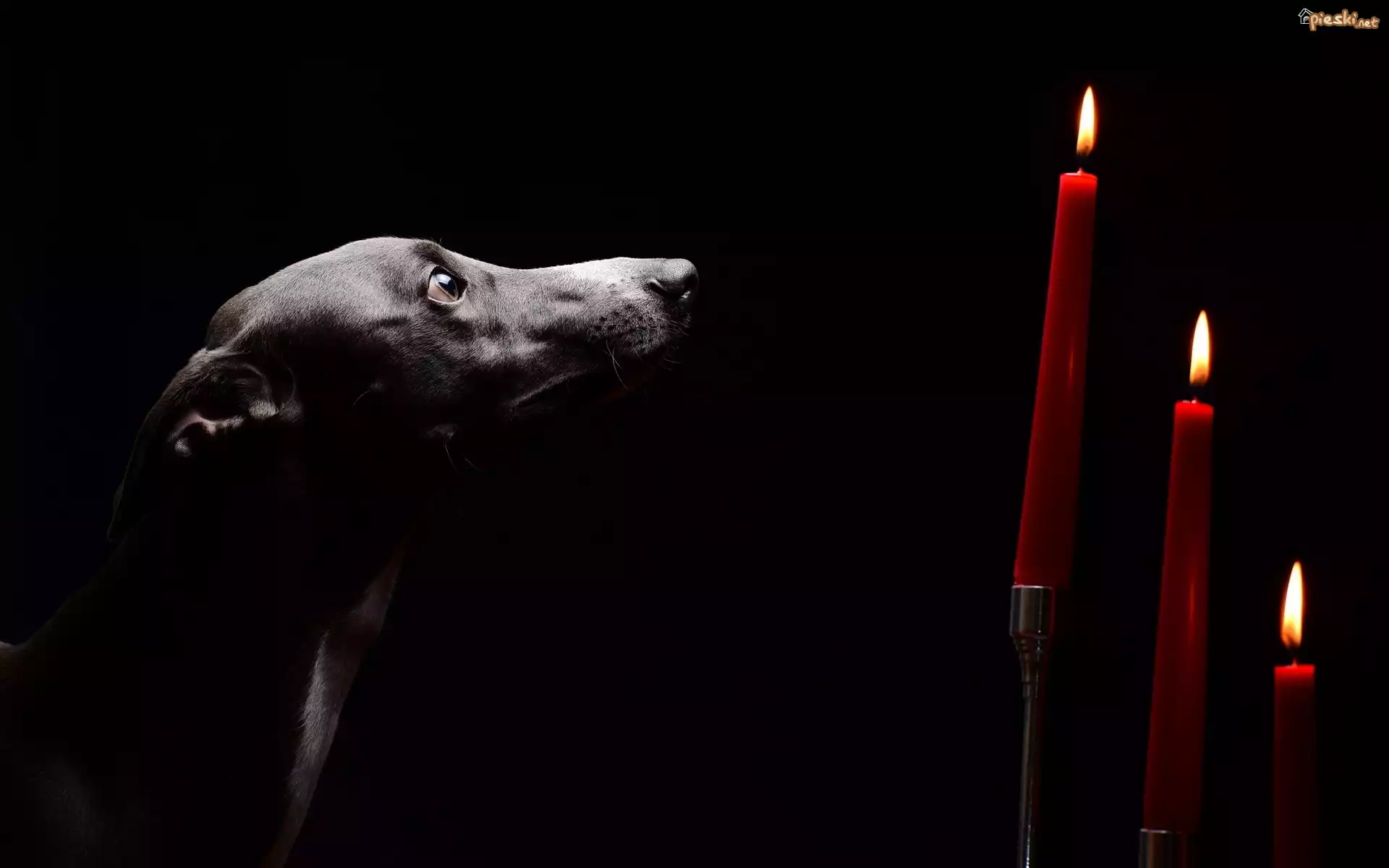 Pies Smutny, Pies, Trzy, Świece, Czarne, Tło