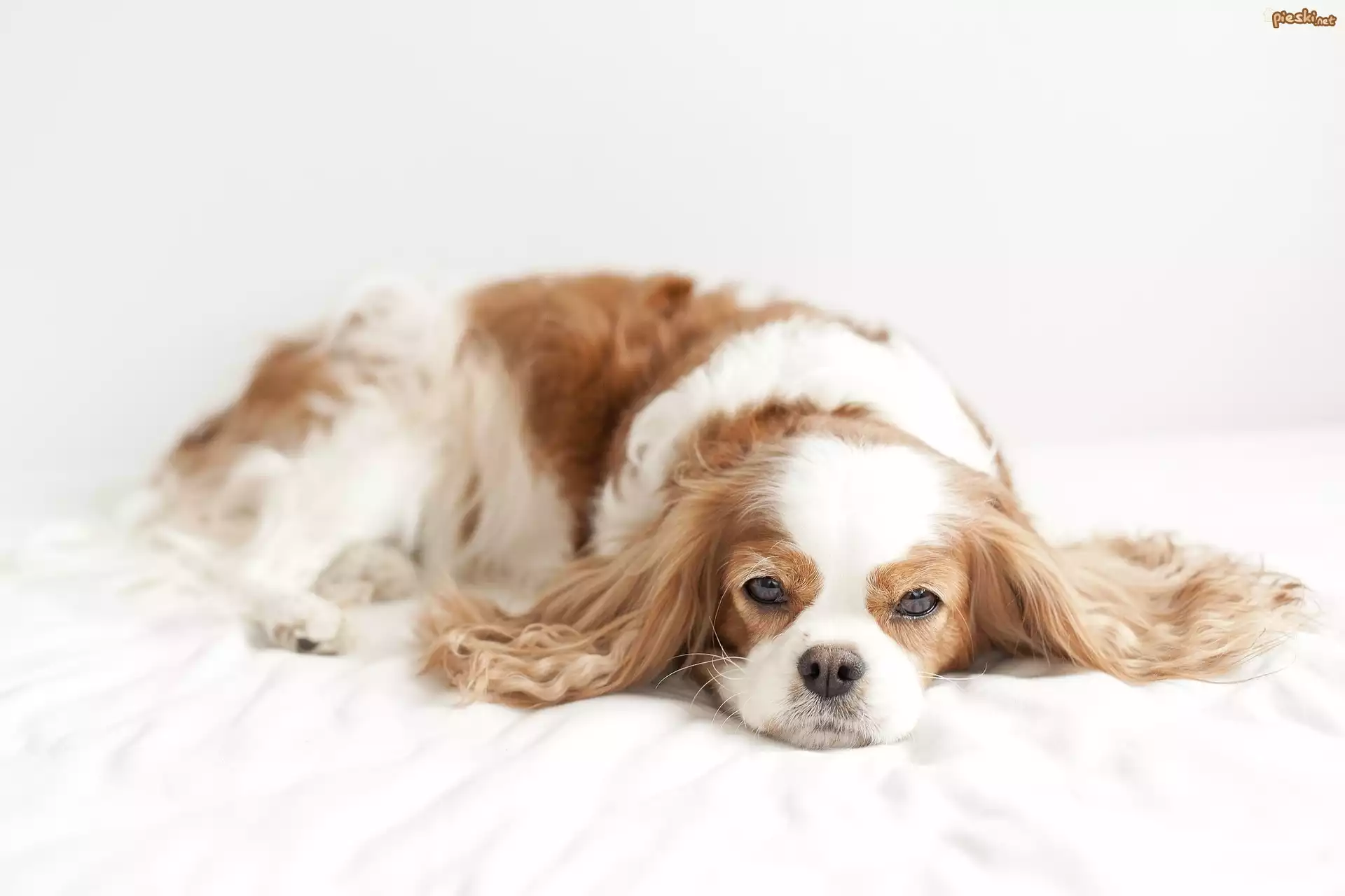 Pies Spaniel, Biało, Beżowy, Odpoczynek