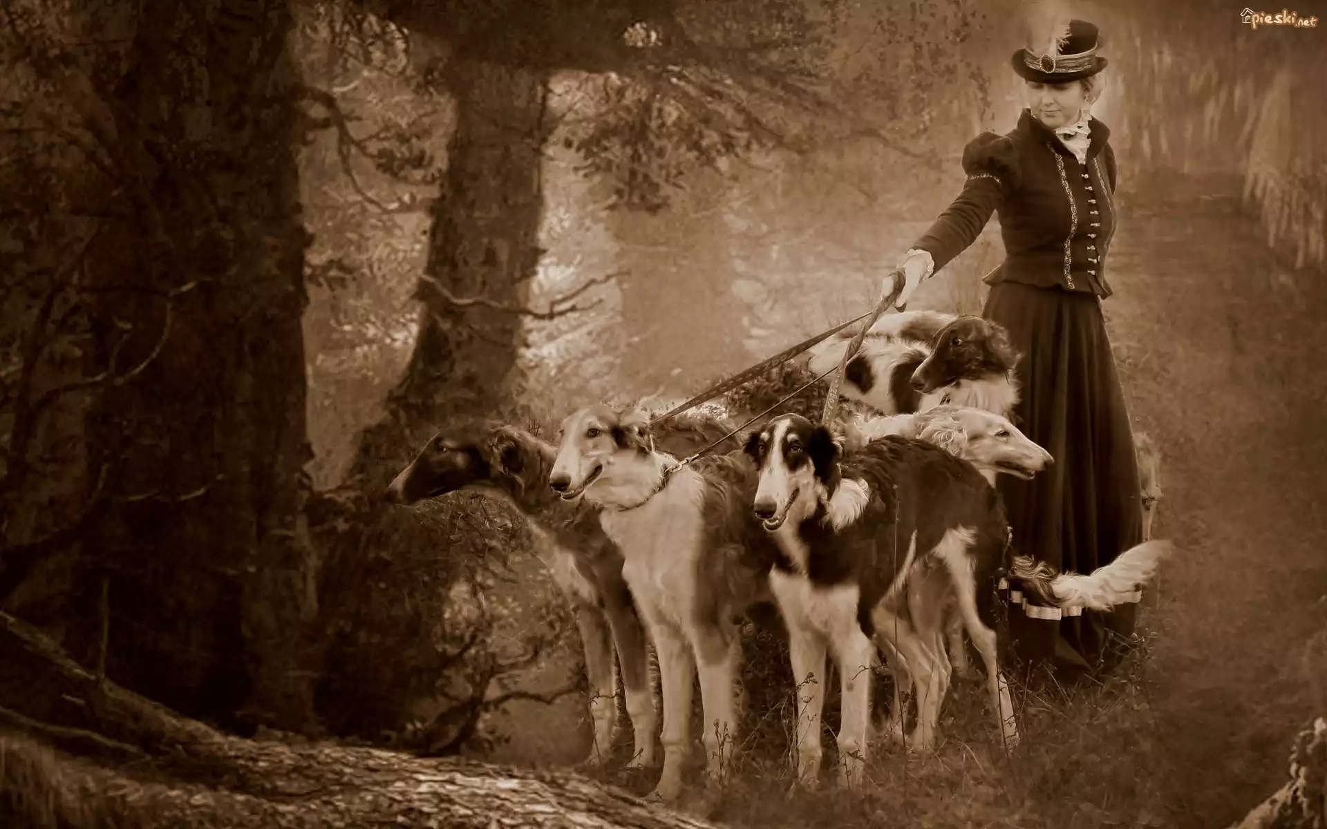 Stara, Fotografia, Kobieta, Psy, Charty, Rosyjskie