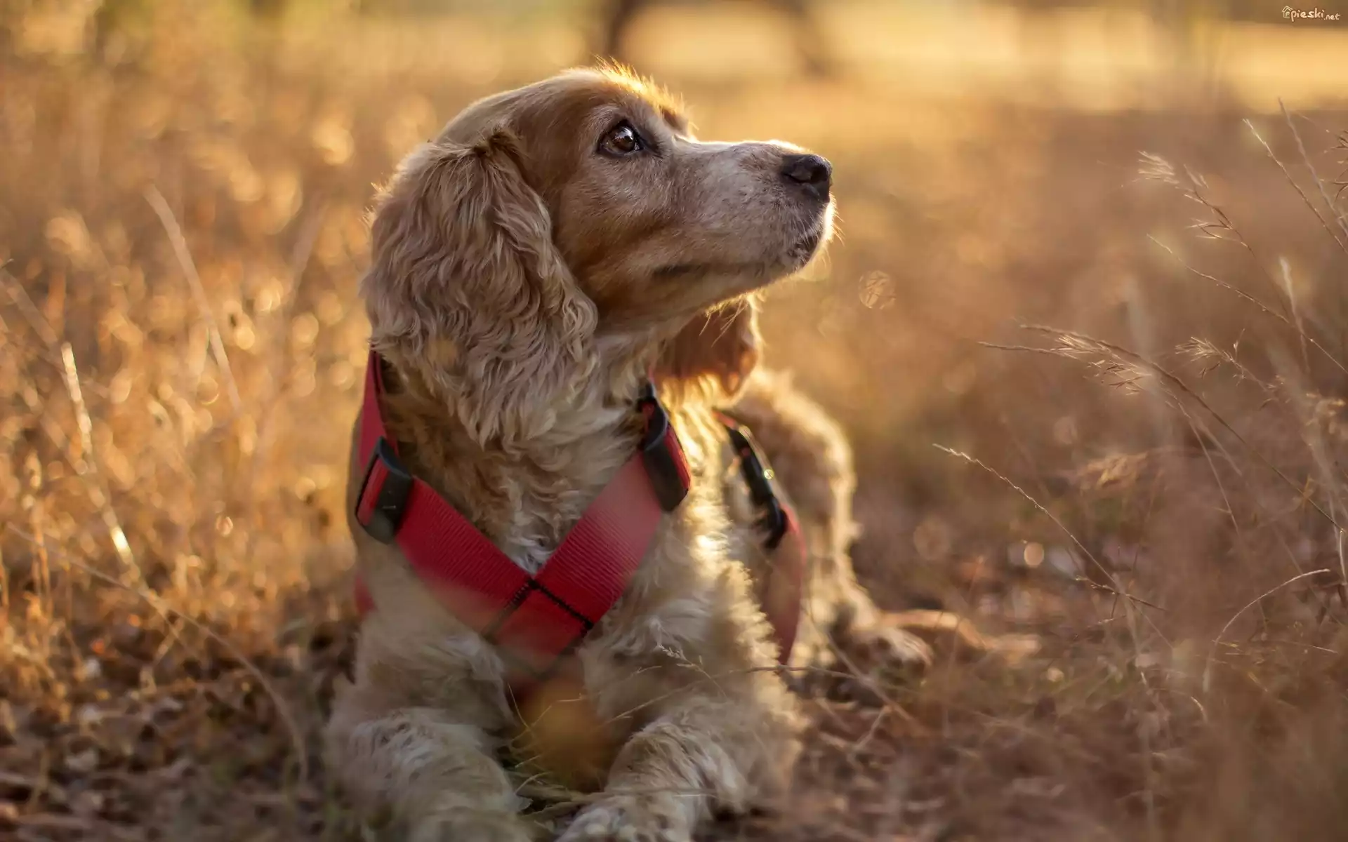 Pies, Suche, Trawy, Cocker spaniel angielski