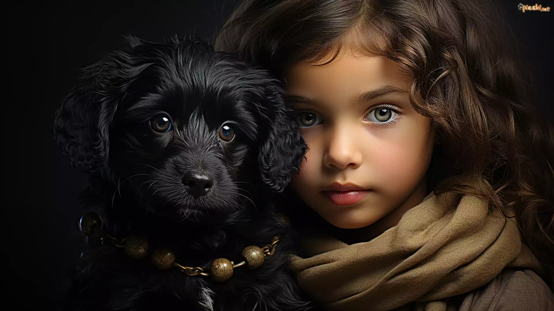 Dziewczynka, Długie, Włosy, Szal, Czarny, Pies