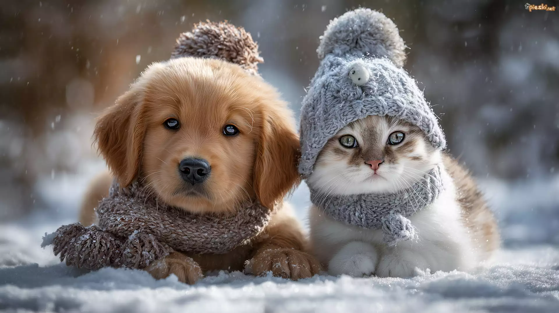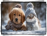 Szczeniak, Pies, Kot, Szaliki, Czapka, Grafika AI