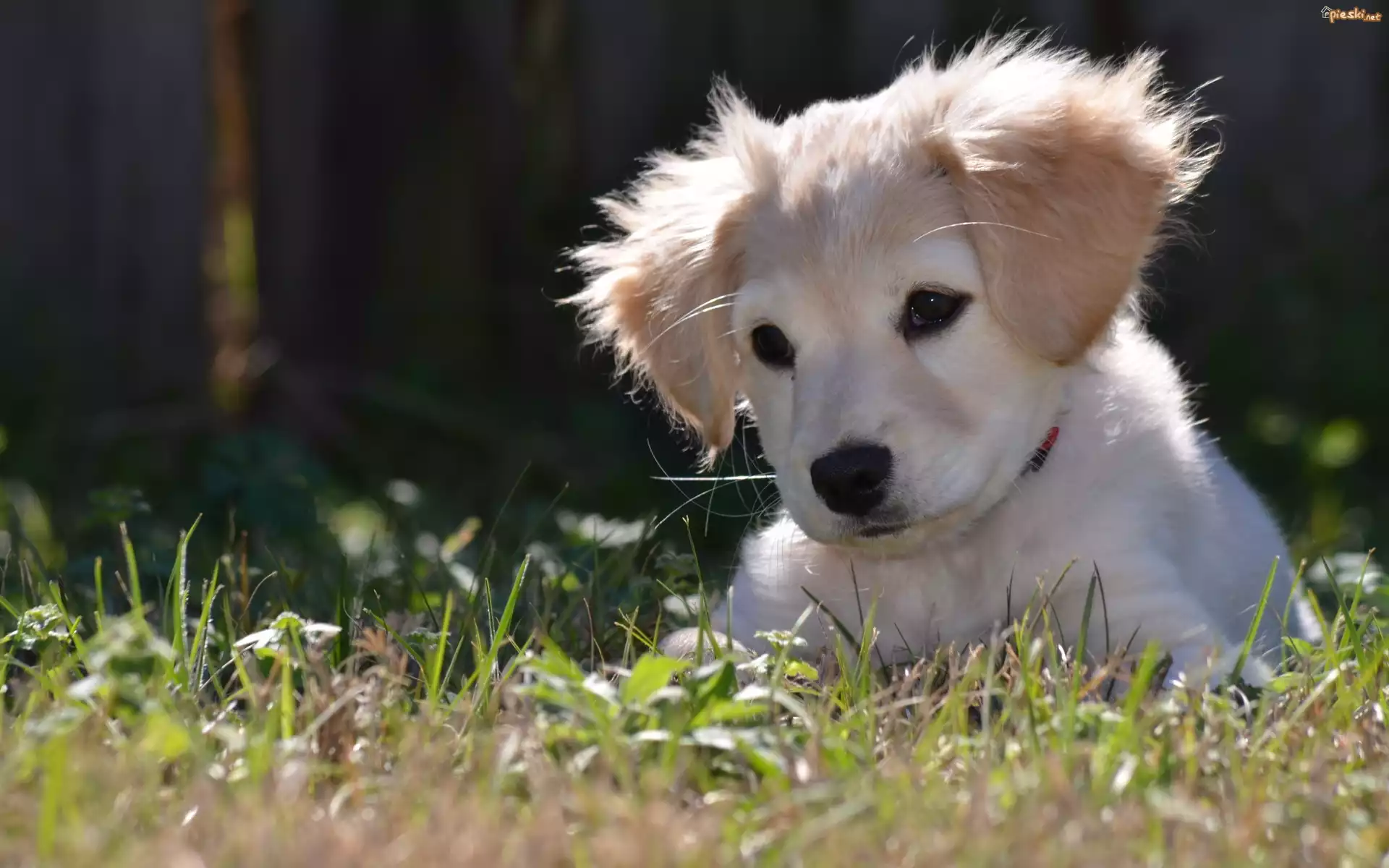 Pies Biały, Szczeniaczek, Trawa, Golden Retriever
