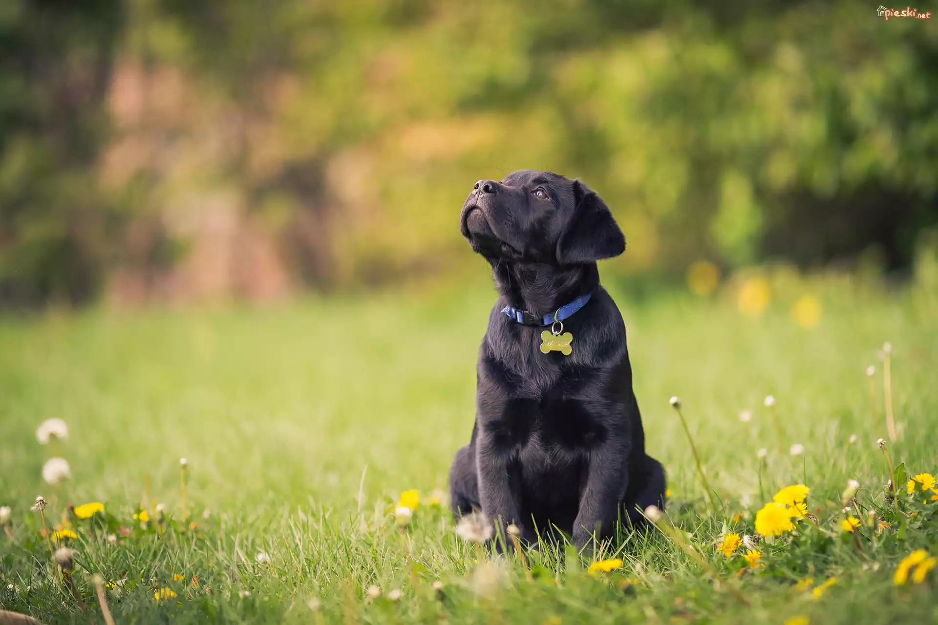 Pies Słodki, Szczeniaczek, Labrador retriever, Polana, Kwiaty, Las