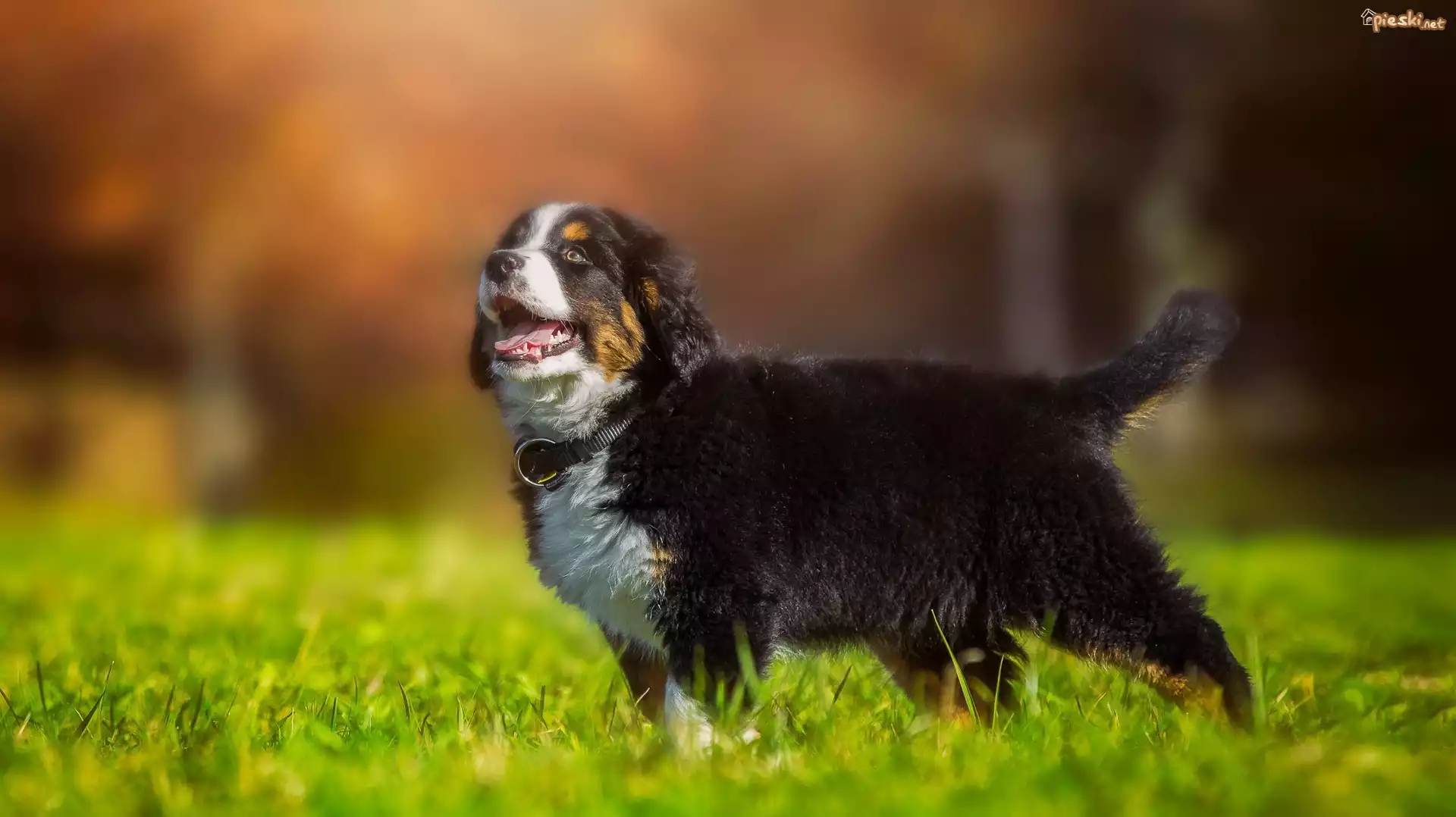 Pies Szczeniak, Berneński pies pasterski, Łąka, Trawa