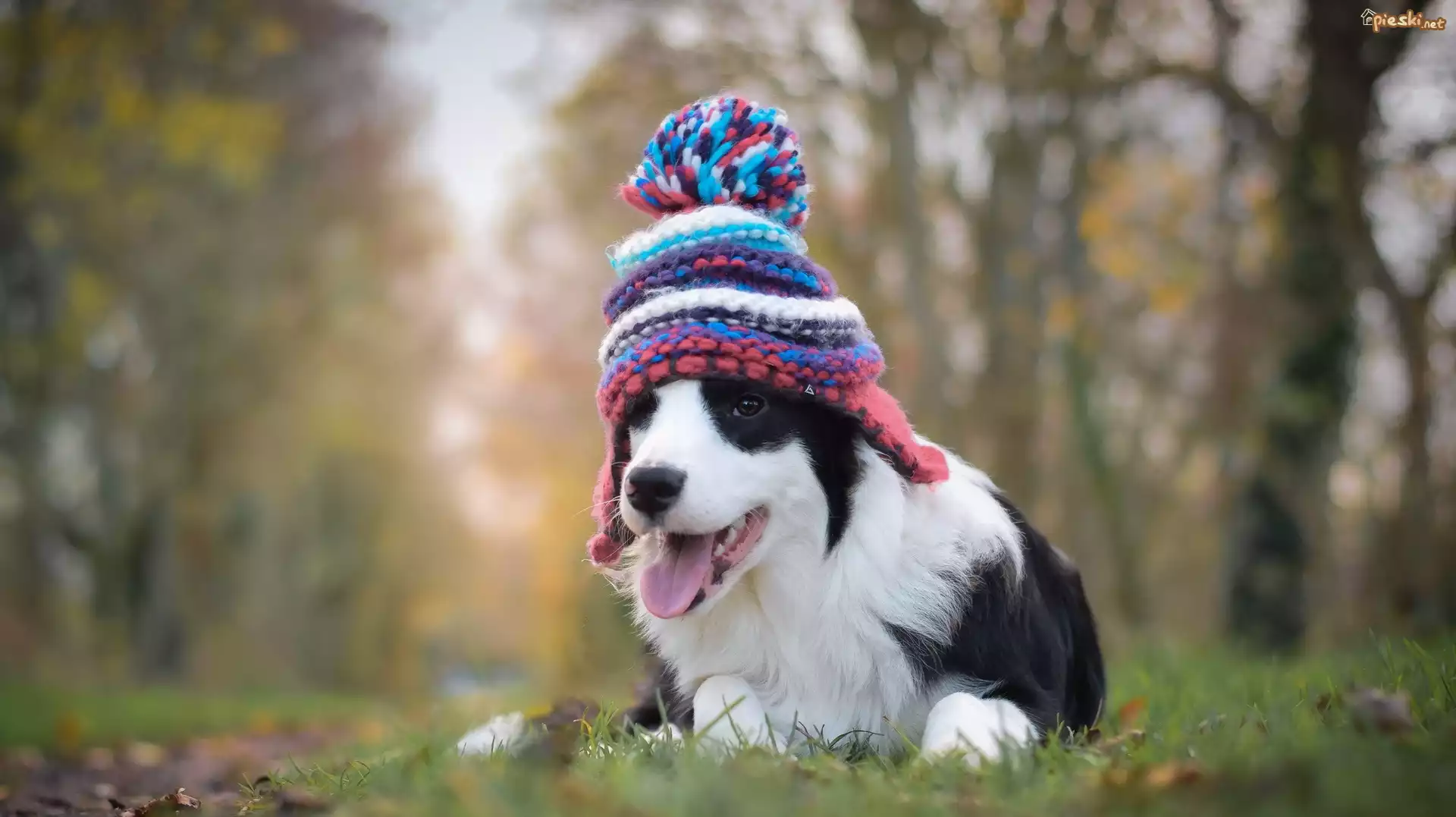 Pies Łąka, Border collie, Szczeniak, Czapeczka
