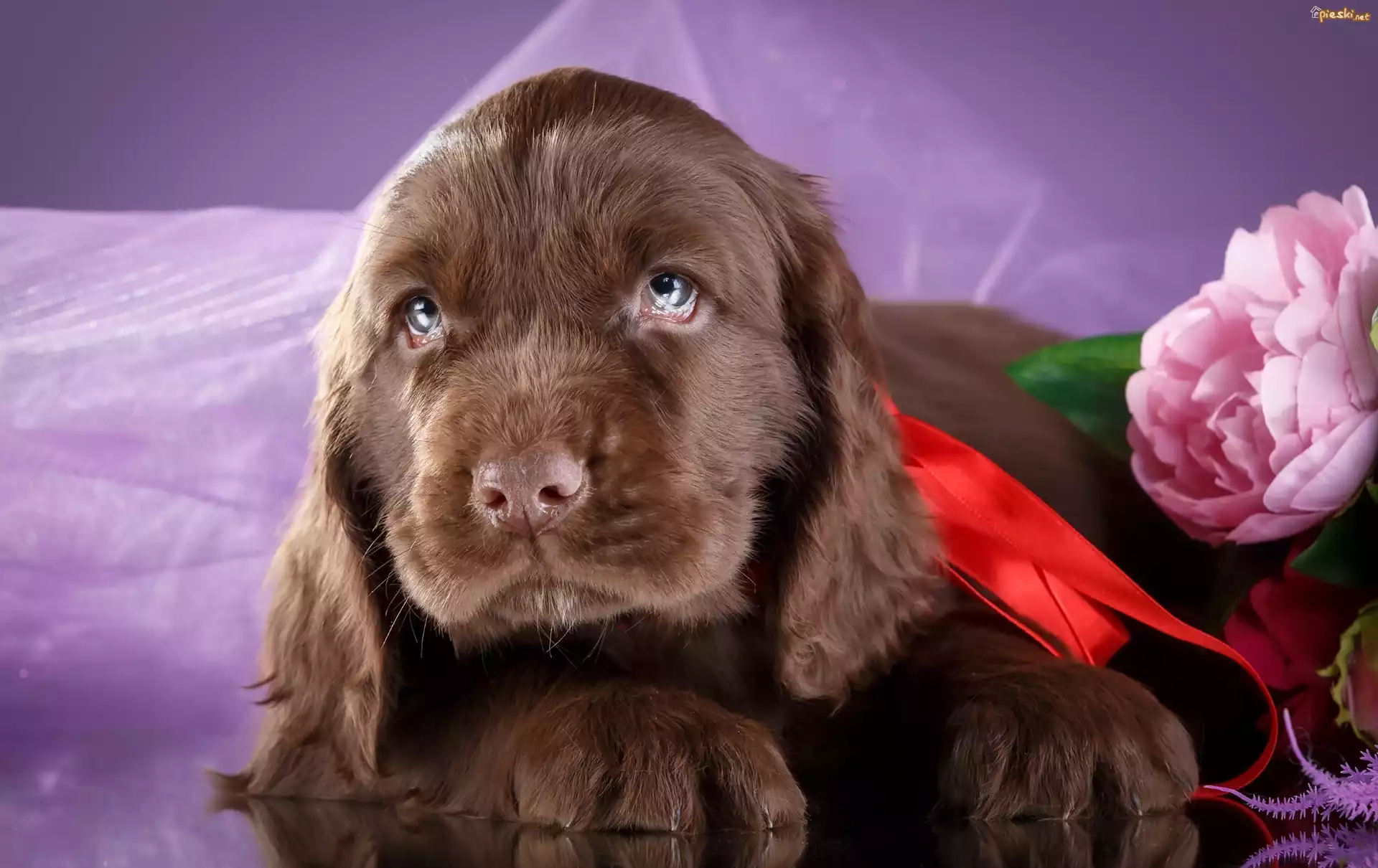 Pies Szczeniak, Spaniel, Kwiat, Piwonia