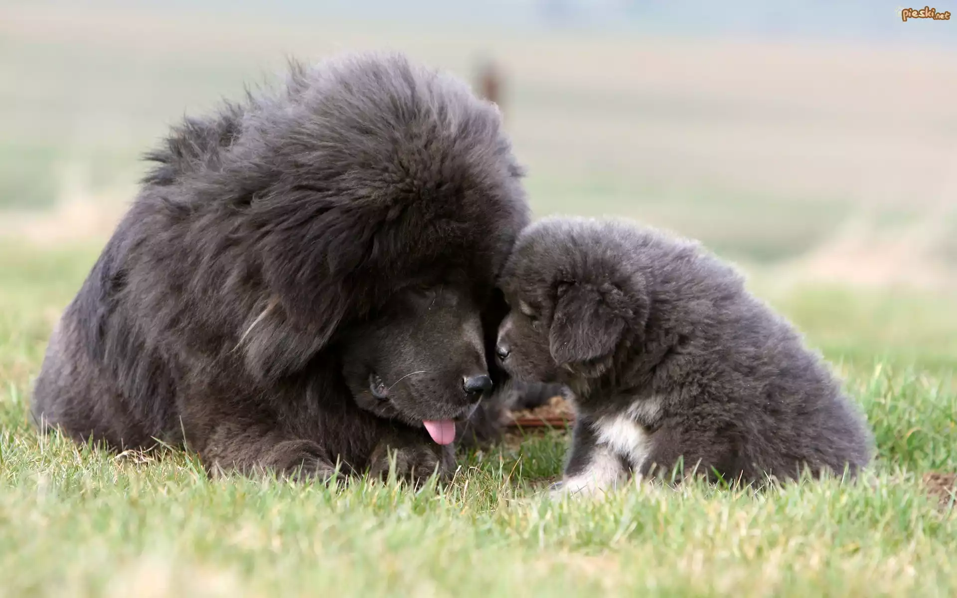 Szczeniak, Z, Mamą, Łąka