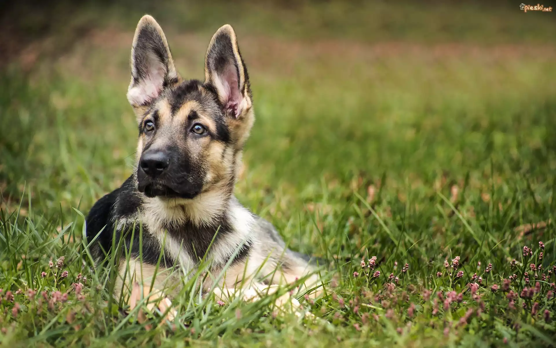 Pies Szczeniak, Owczarek, Niemiecki, Trawa