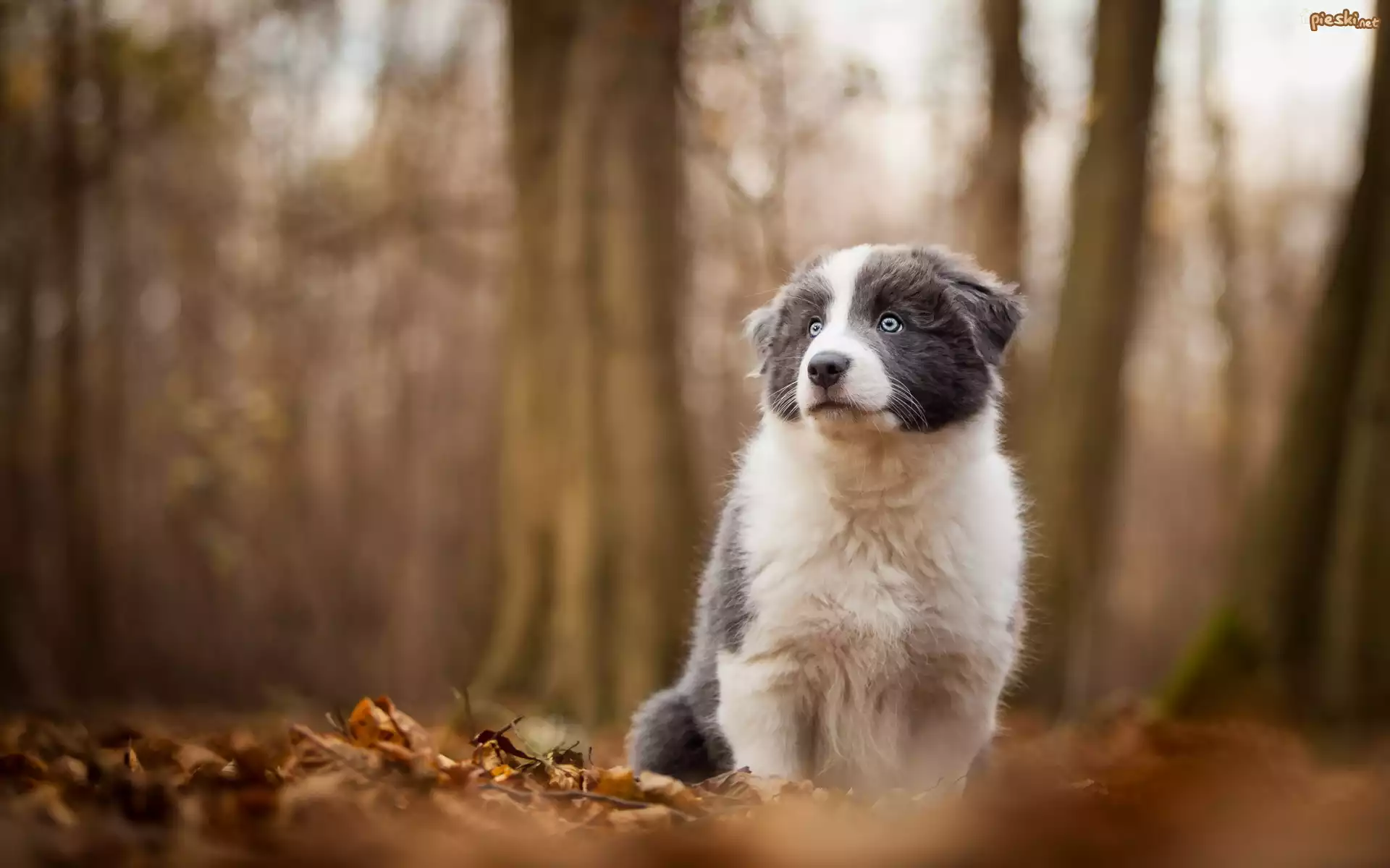 Pies Pies, Szczeniak, Border, Collie, Las, Rozmyte, Tło