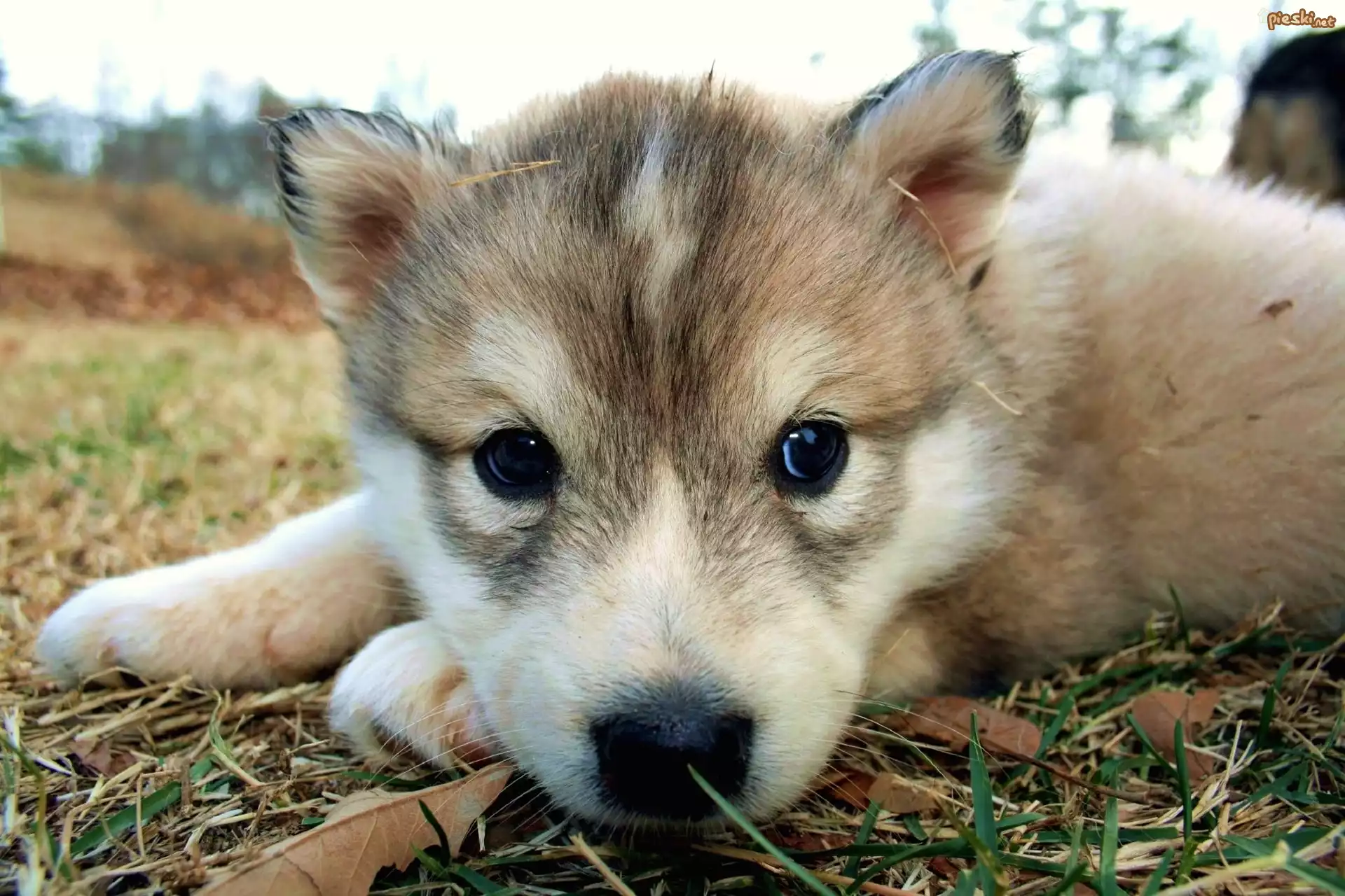 Pies Szczeniak, Husky, Pyszczek, Trawa