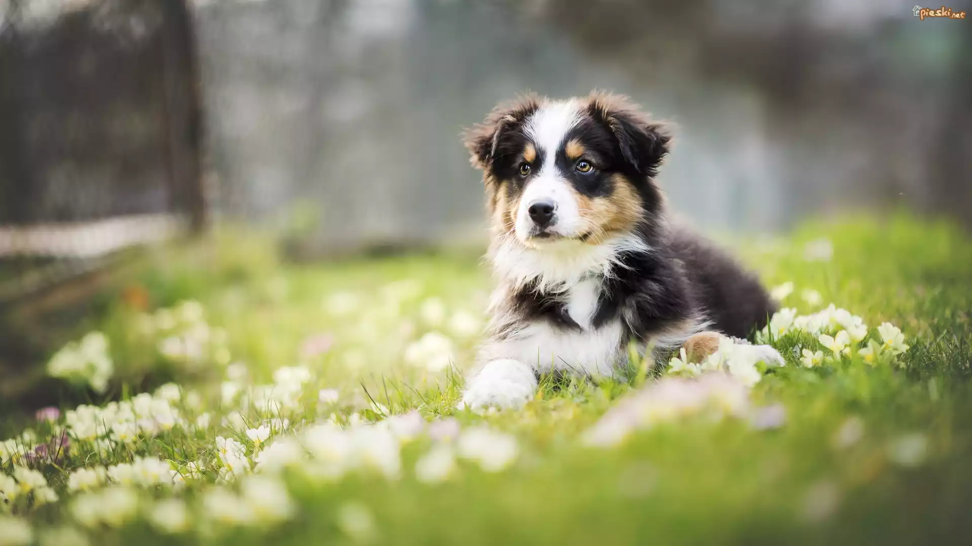 Szczeniak, Owczarek australijski-australian shepherd, Łąka