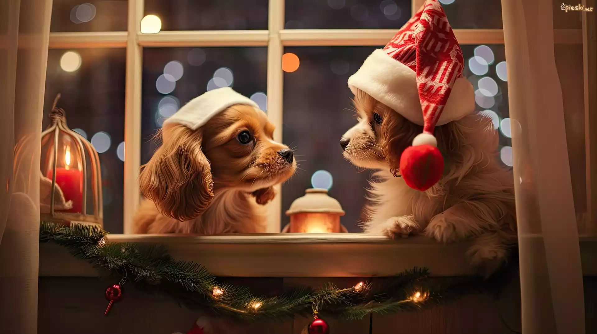 Pies Psy, Szczeniaki, Czapki, Okno, Świeca