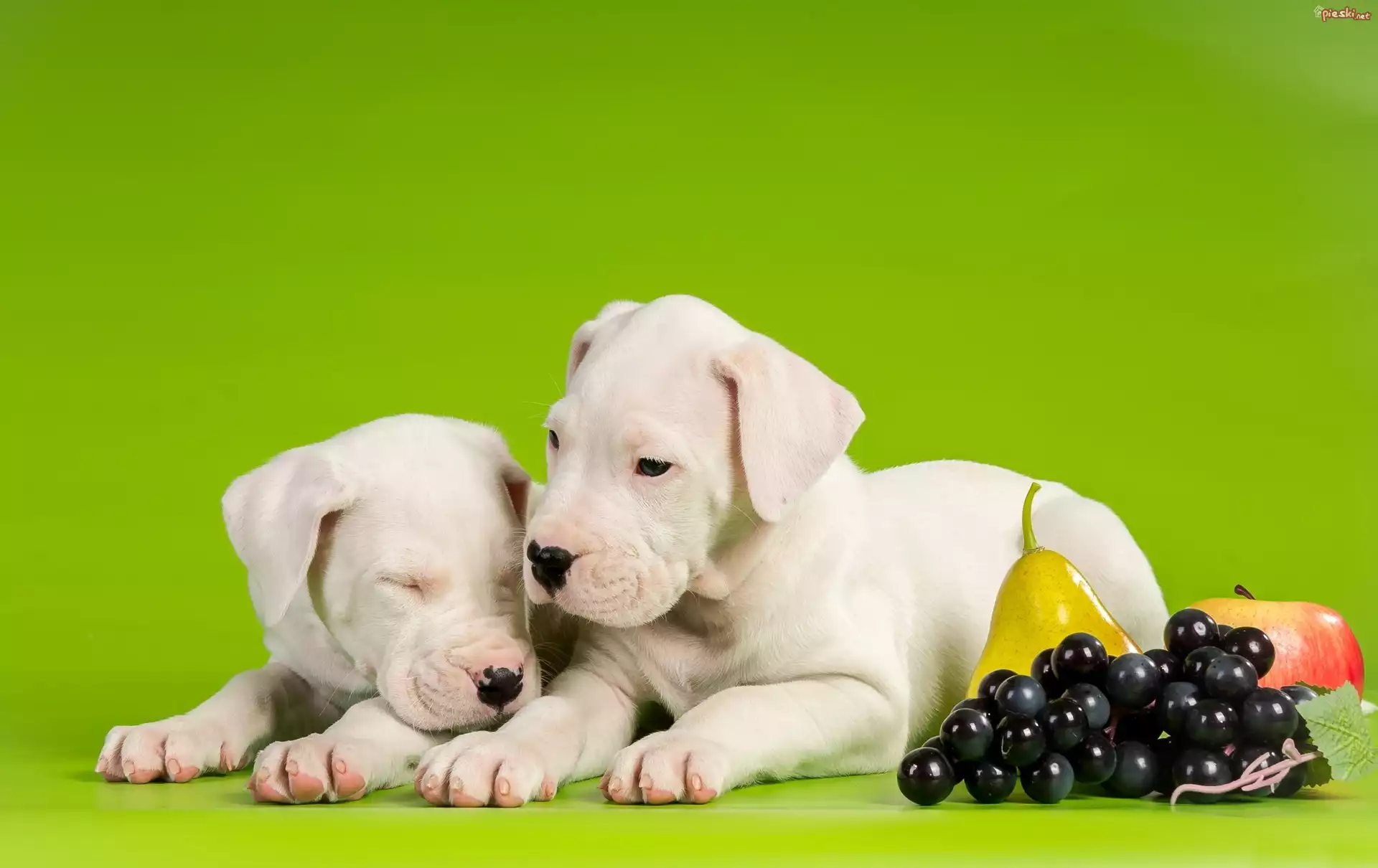 Szczeniaki, Bulteriery, Owoce, Winogrona, Gruszka, Jabłko