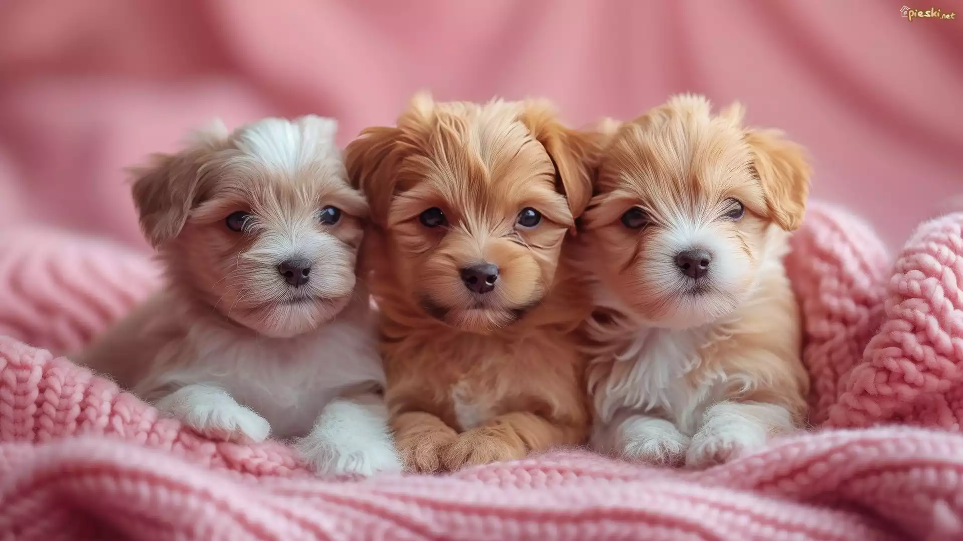 Pies Psy, Rudo-białe, Szczeniaki, Różowe, Posłanie