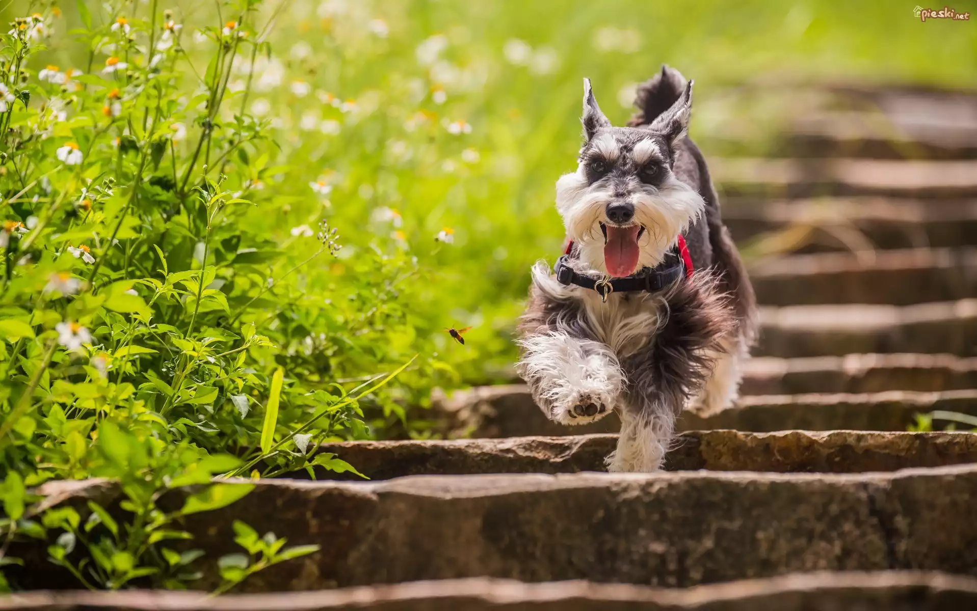 Pies Sznaucer miniaturowy, Bieg, Schody, Owad