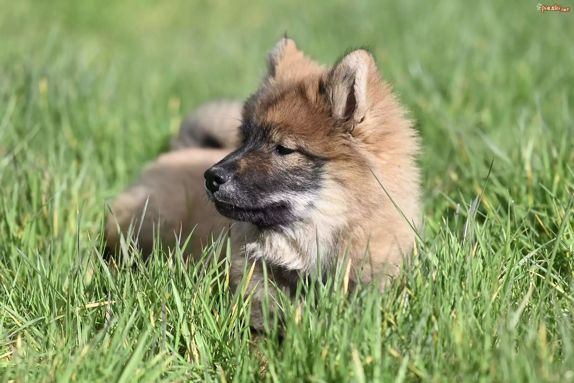 Pies, Szpic eurasier, Szczeniak, Trawa