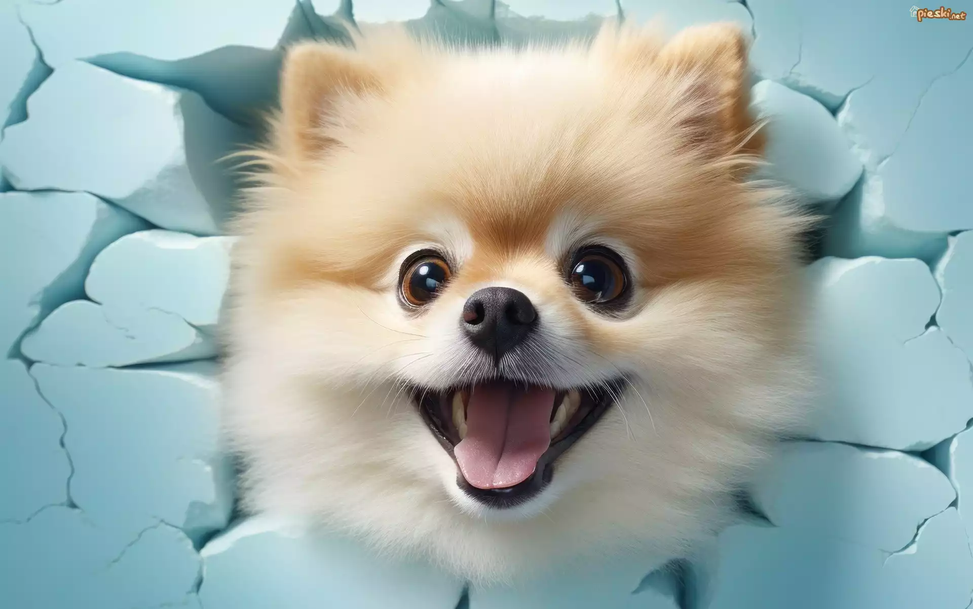 Brązowo-biały, Pies, Szpic miniaturowy, Ściana, Dziura