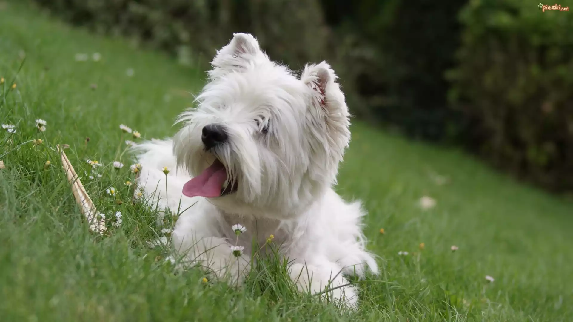 Pies Biały, Terier, Łąka