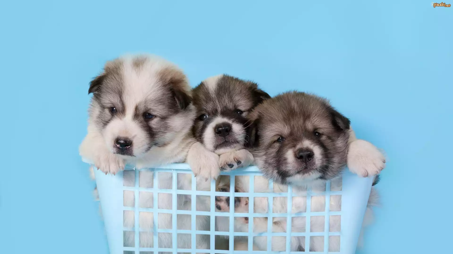 Pies Trzy, Psy, Szczeniaki, Akita, Koszyk