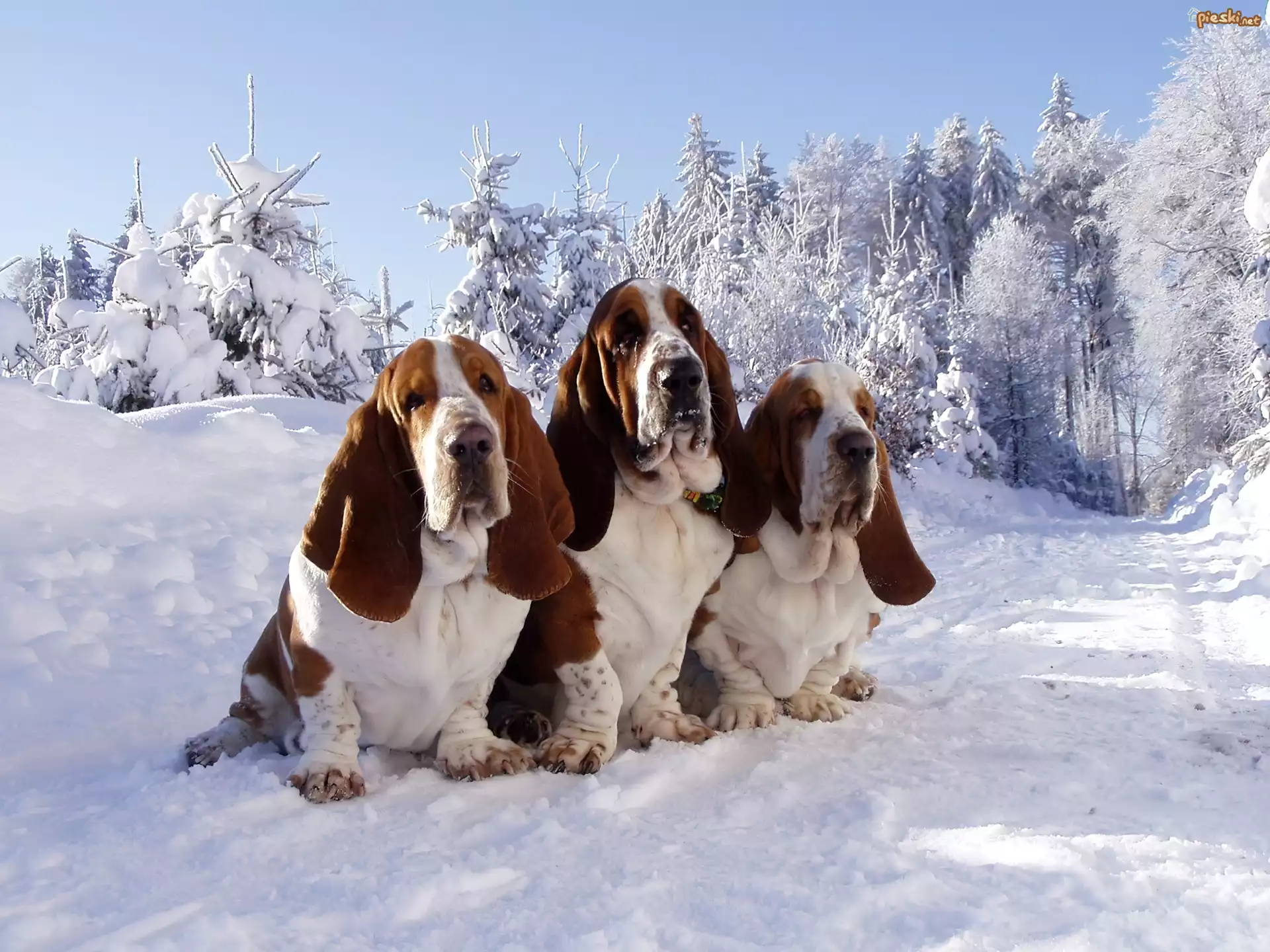 Pies Trzy, Pieski, Bassety, Śnieg