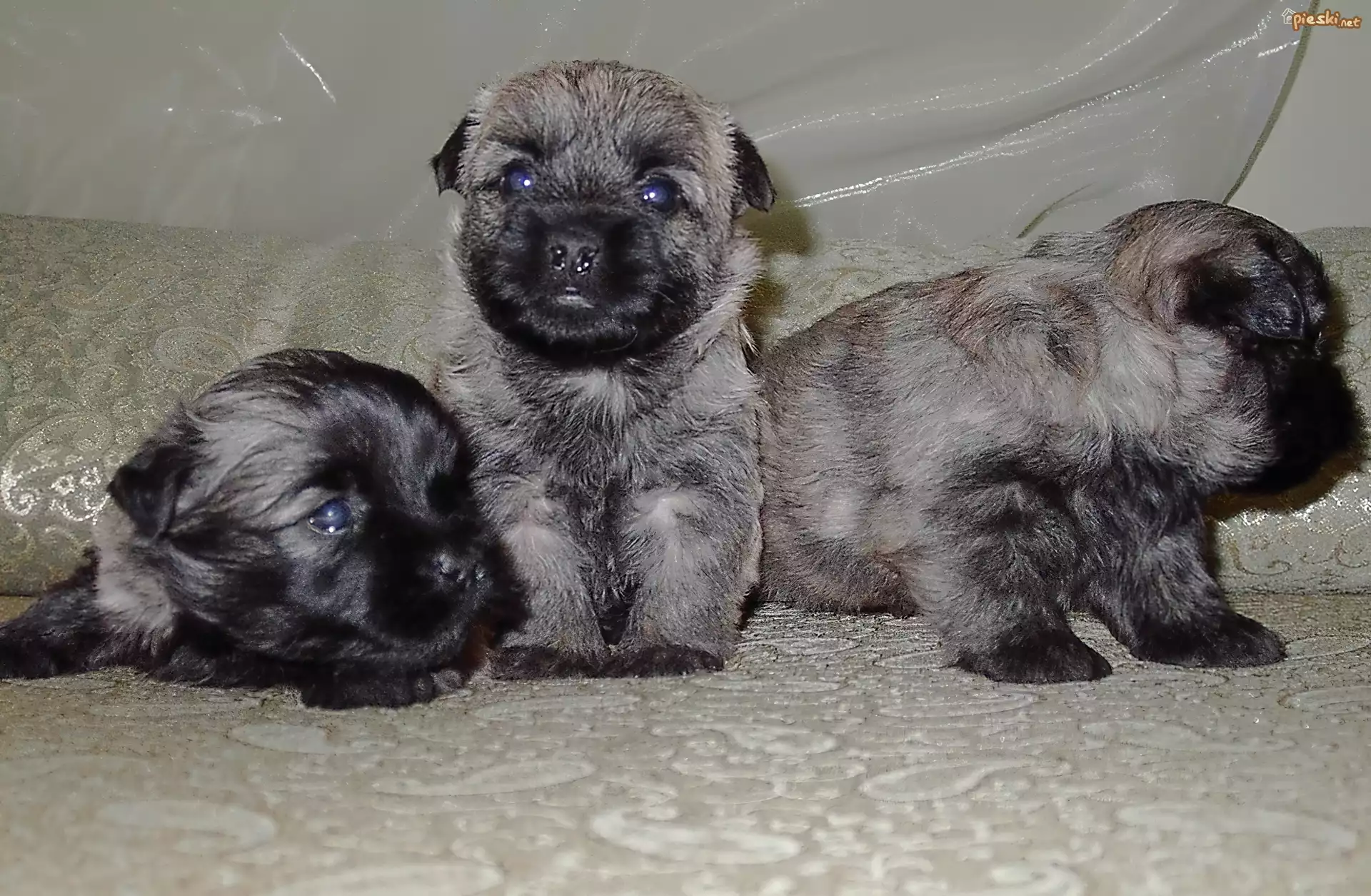 Pies trzy, słodkie, szczeniaki, Cairn Terrier