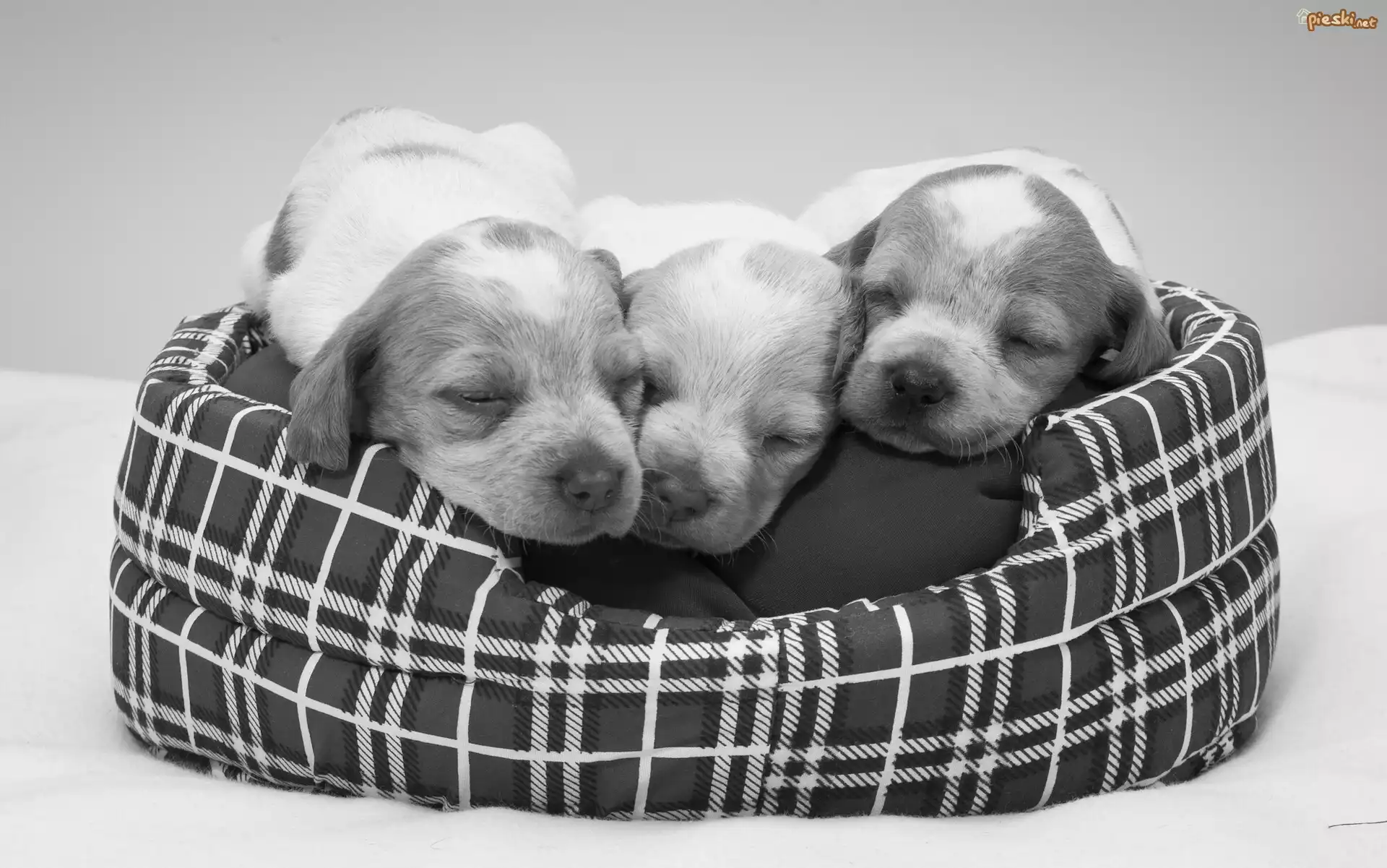 Trzy, Szczeniaki, Legowisko, Czarno-Białe