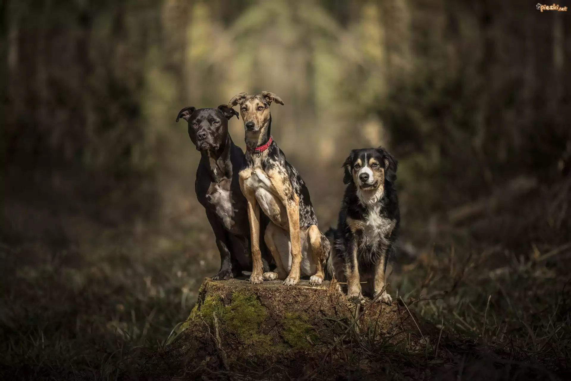 Trzy, Psy, Amstaff, Whippet, Kundelek