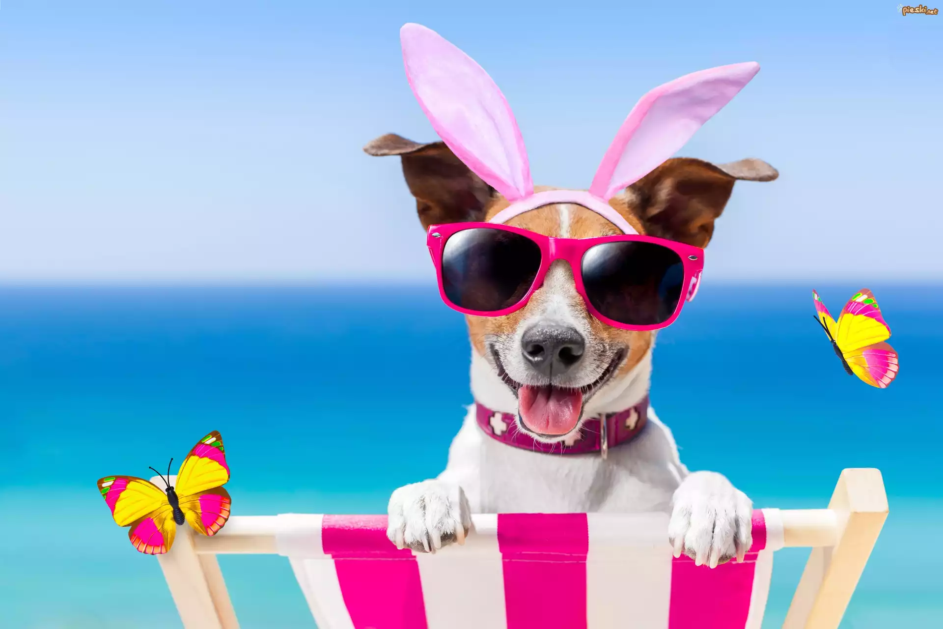 Pies Śmieszne, Pies, Jack Russell terrier, Okulary, Motylki, Leżak, Wakacje