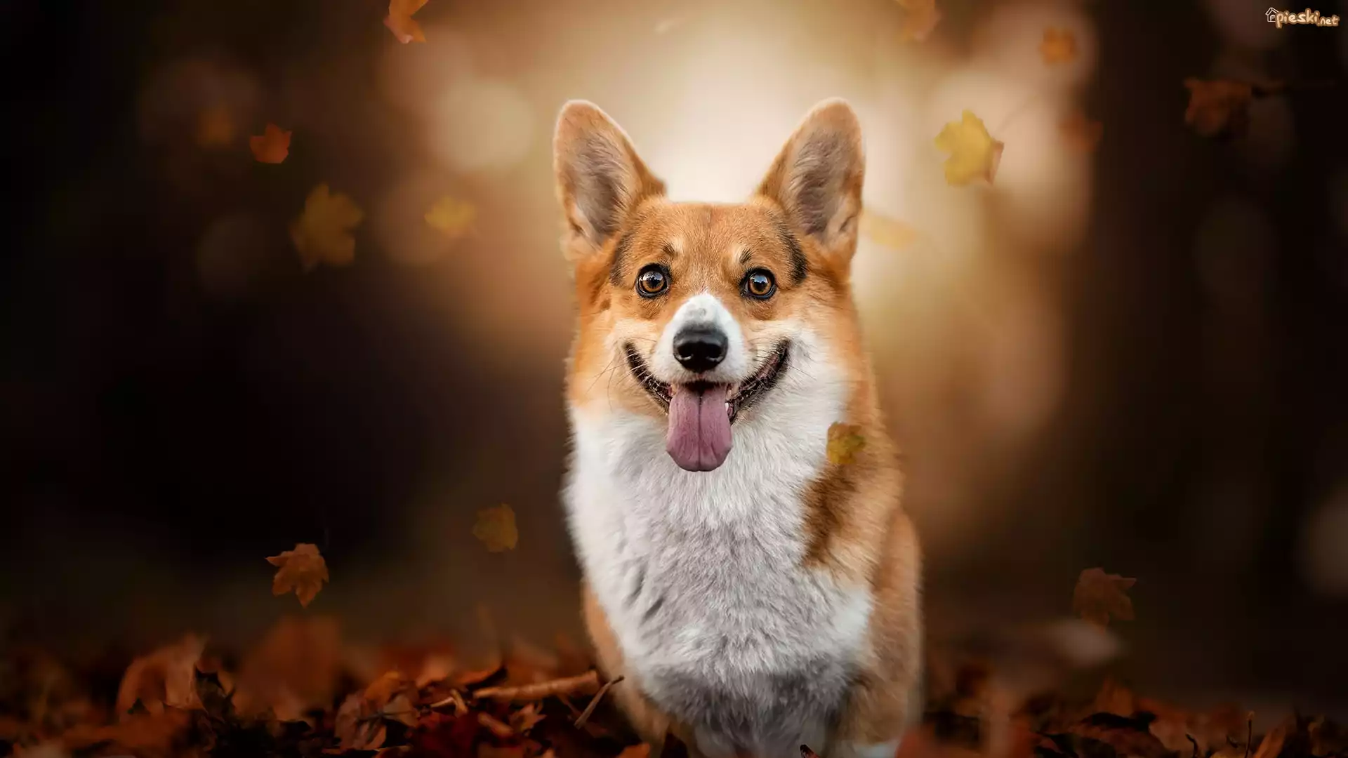 Pies Pies, Welsh corgi pembroke, Mordka, Jęzor, Liście