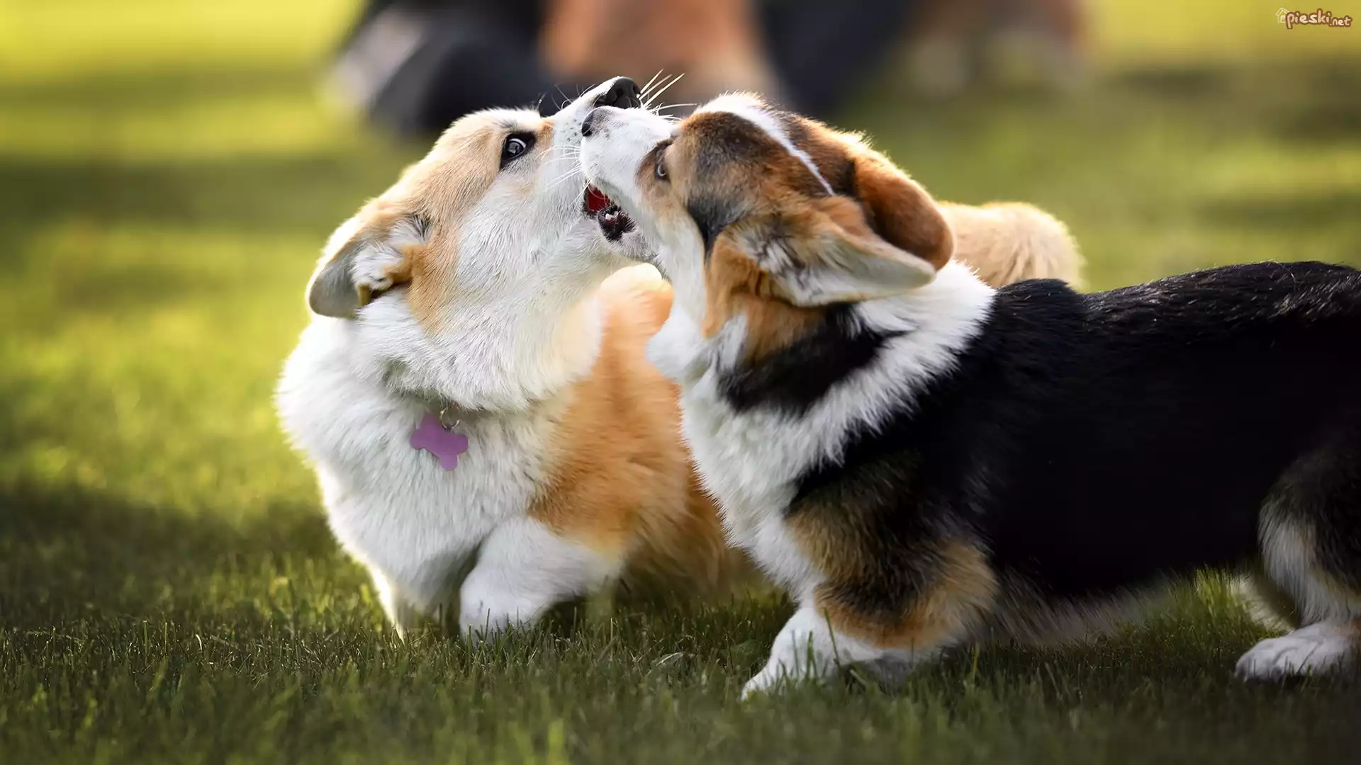 Pies Dwa, Psy, Zabawa, Welsh corgi cardigan, Trawa
