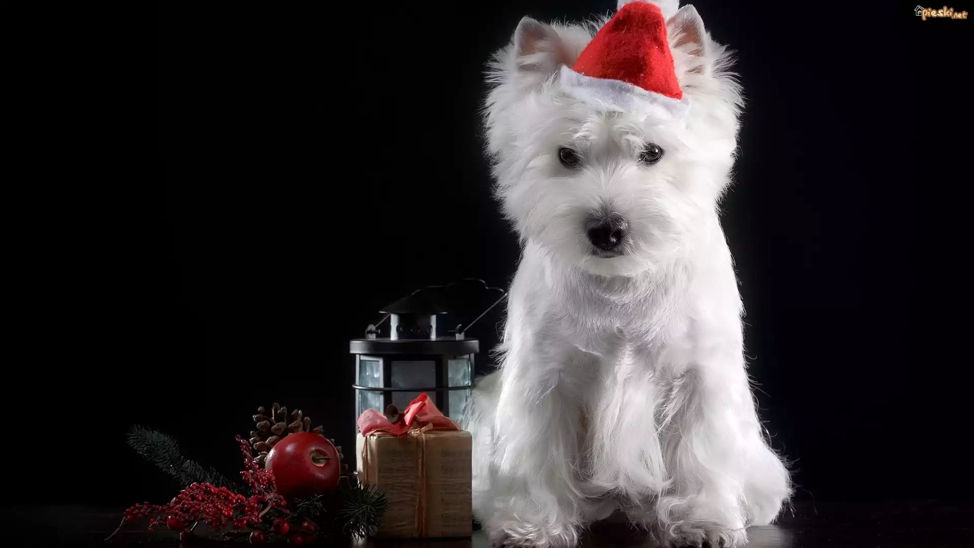 Pies Pies, West Highland white terrier, Czapeczka, Mikołaja