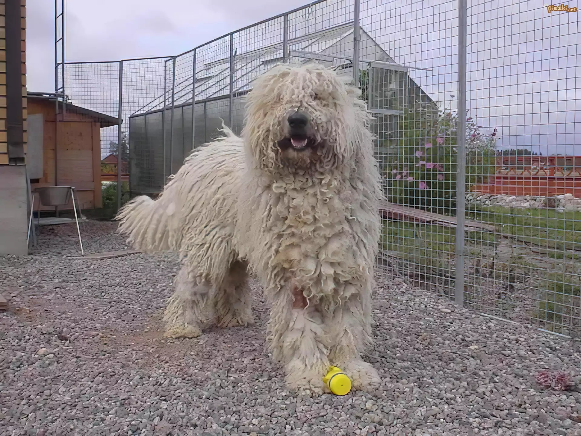 Pies Komondor, wysoki, płot