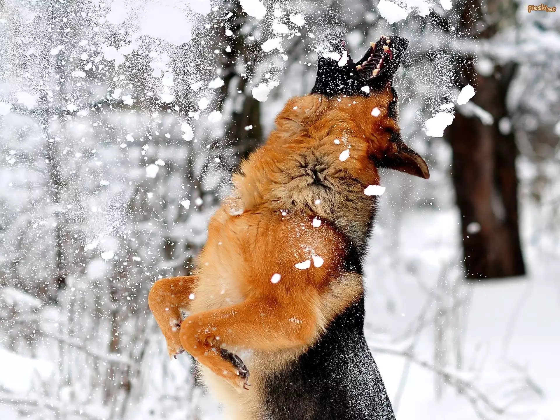 Pies Zabawa, Śnieg, Owczarek, Niemiecki