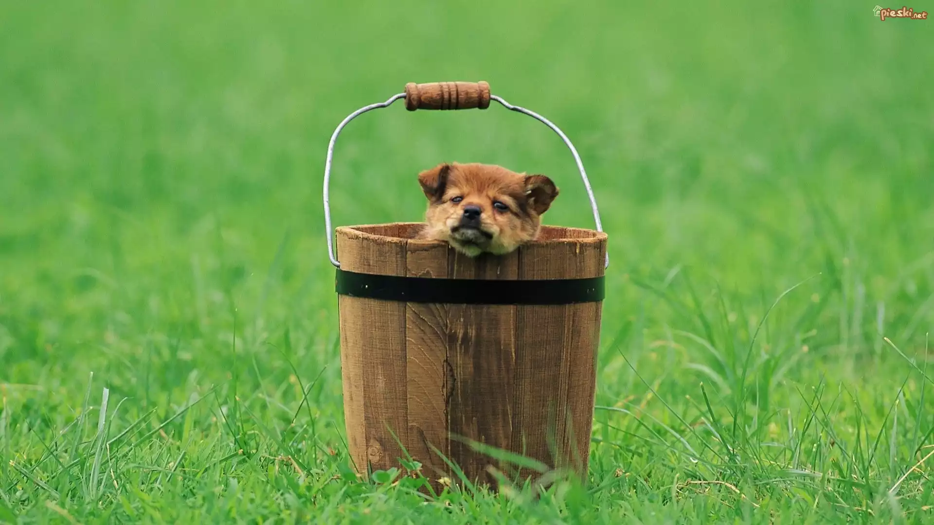Zielona, Trawa, Wiaderko, Szczeniaczek