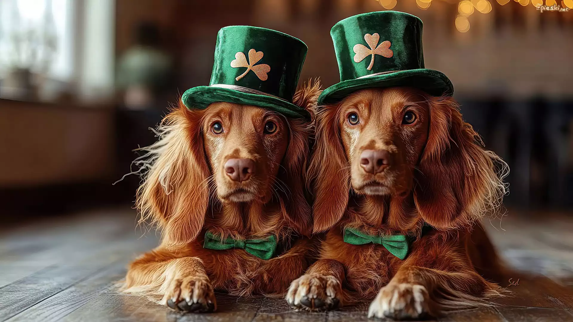 Pies Rude, Dwa, Psy, Zielone, Kapelusze, Cylindry, Grafika