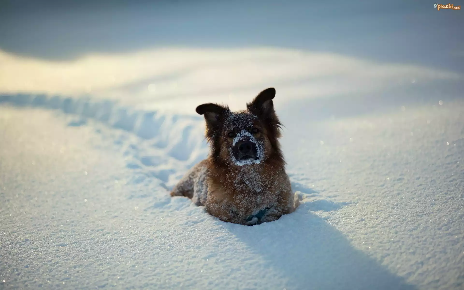 Zima, Pies, Dużo, Śniegu